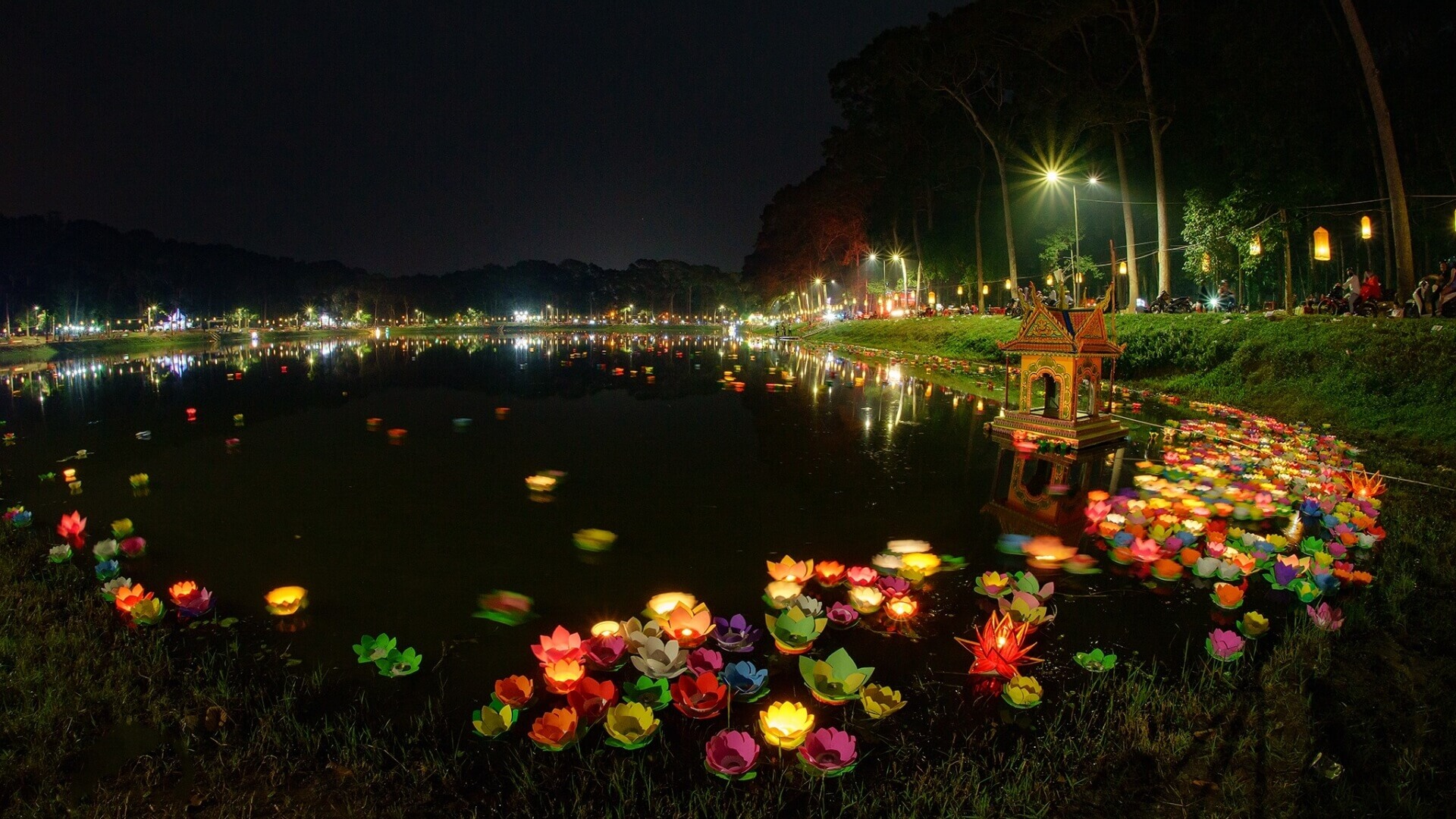 Khi màn đêm buông xuống,Ao Bà Om trở nên lung linh huyền ảo với lễ hội thả đèn gió. Hàng ngàn chiếc đèn lồng đủ màu sắc được thả lên bầu trời đêm,tạo nên một cảnh tượng lãng mạn và ấn tượng. Hoạt động thả đèn gió không chỉ mang đến niềm vui giải trí mà còn chứa đựng ý nghĩa tâm linh sâu sắc,thể hiện ước vọng về một cuộc sống ấm no,hạnh phúc và cầu chúc cho mùa màng bội thu.