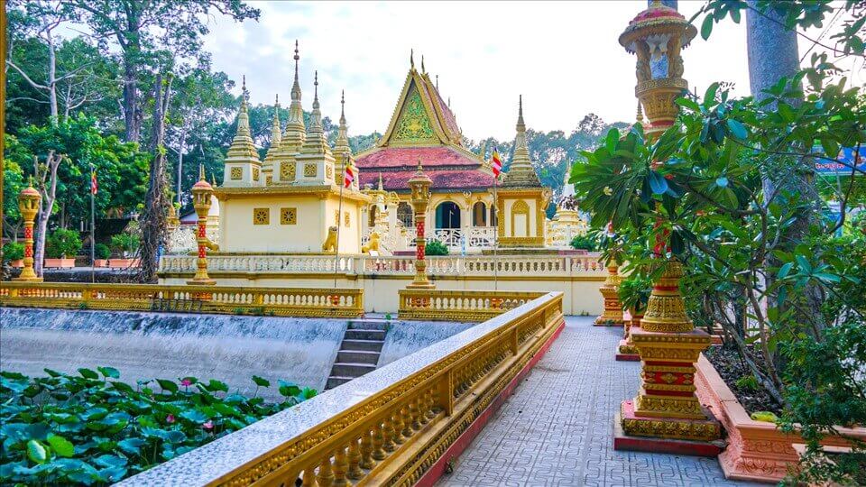 Khi đến Ao Bà Om,bạn không nên bỏ lỡ cơ hội khám phá chùa Âng – một trong những ngôi chùa cổ kính và linh thiêng nhất của người Khmer. Với lịch sử hình thành hơn một thiên niên kỷ,chùa Âng nổi bật với kiến trúc Khmer cổ đại,được thể hiện qua các hoa văn tinh xảo,bức tượng uy nghiêm và màu sắc trầm mặc.