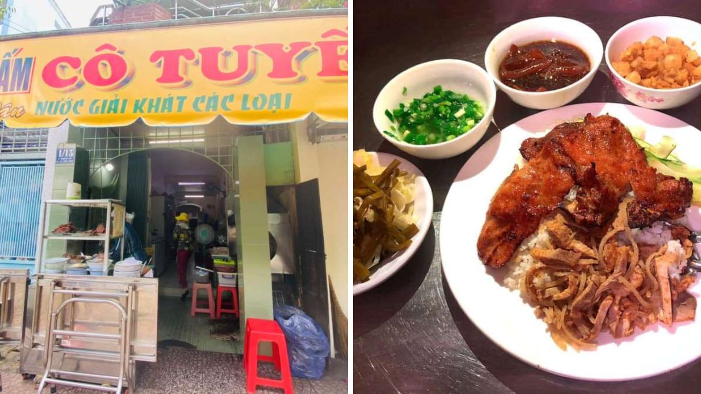 Đến Vĩnh Long,nhiều người thường tìm về Cơm Tấm Cô Tuyết như một thói quen để thưởng thức hương vị cơm tấm chuẩn mực. Đây không phải là một nhà hàng sang trọng,mà chỉ là một quán ăn bình dân nằm khiêm tốn trên đường Lý Thường Kiệt. Thế nhưng,sức hút của quán lại chẳng hề nhỏ,thể hiện qua làn khói thơm lừng từ vỉ nướng thịt và dòng khách tấp nập ra vào từ sáng sớm đến tận tối muộn.