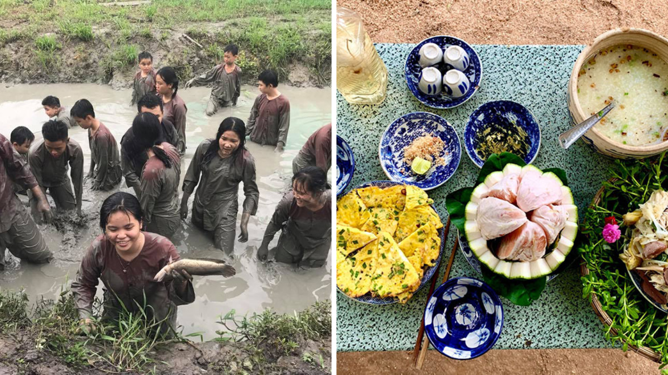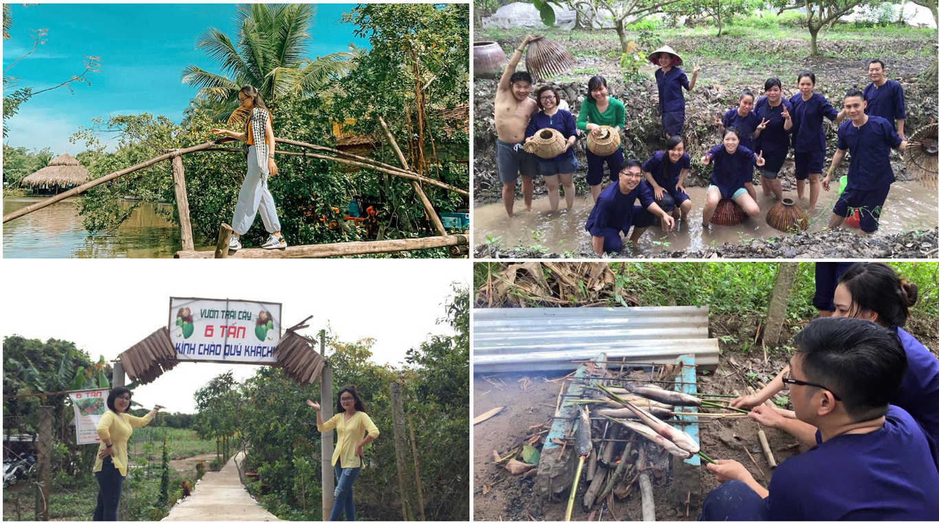 Đến Vườn 6 Tấn,bạn nhất định phải "lăn xả" hết mình với các hoạt động ngoài trời. Trải nghiệm được mọi người hưởng ứng đông đảo nhất chính là tát mương bắt cá. Nhà vườn sẽ phát cho bạn những dụng cụ như nơm,rổ tre để bạn tự mình lội xuống mương bùn. Cảm giác lấm lem bùn đất nhưng bắt được những con cá rô,cá trê,cá lóc thực sự rất phấn khích.