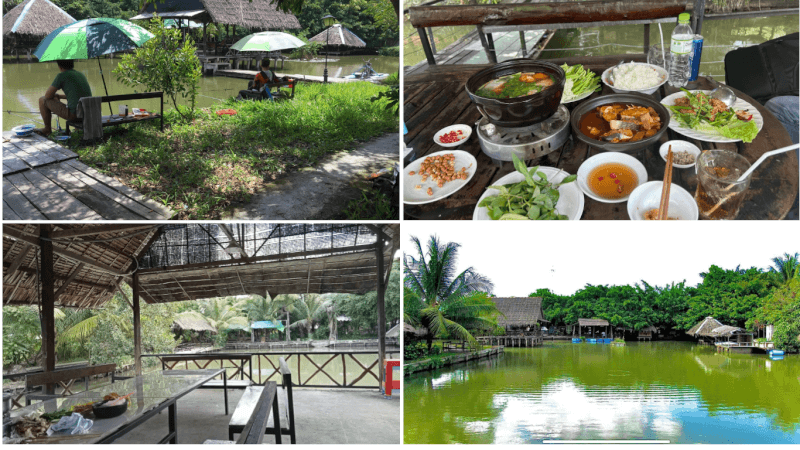 Quán nằm ở địa chỉ 176 Tân Xuân, Tân Ngãi, Vĩnh Long, ấn tượng đầu tiên khi mình vừa bước vào quán chính là lối kiến trúc nhà sàn truyền thống rất độc đáo và thu hút. Quán sử dụng các vật liệu mộc mạc như gỗ và mái lá, tạo nên một vẻ ngoài rất giản dị và thân thương, đúng chất miền Tây. Thiết kế này ngay lập tức đưa mình vào một không gian đậm chất quê, giúp thực khách tách biệt hẳn với sự ồn ào, tấp nập của thành phố. Mình thấy quán bố trí các khu vực ngồi ăn rất thoáng đãng và sạch sẽ, tạo cảm giác thoải mái tối đa.