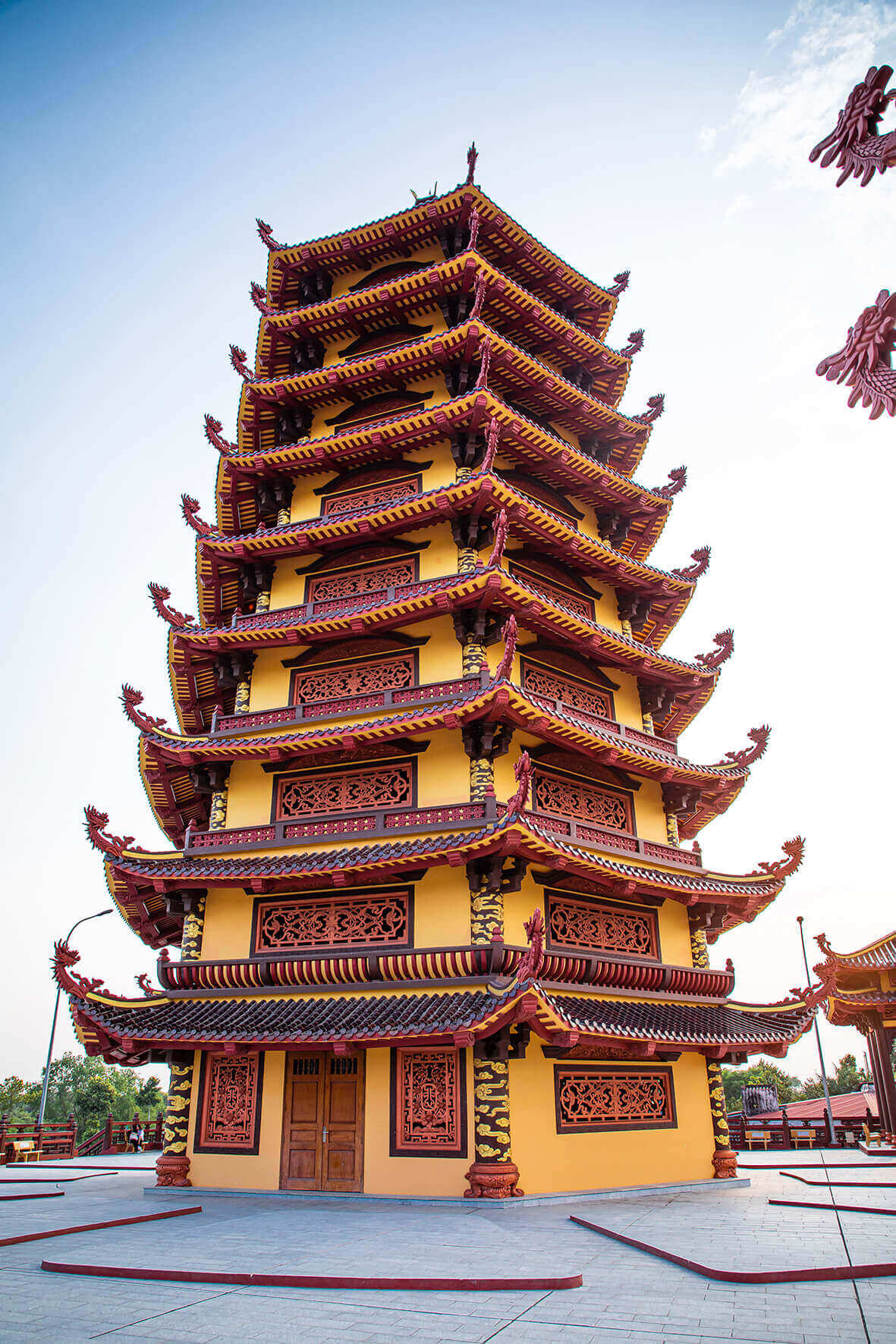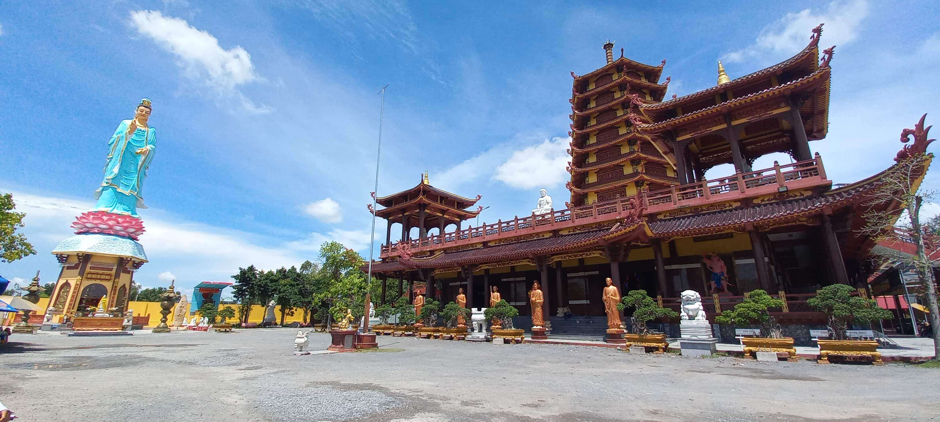 Đứng trên quảng trường rộng lớn,du khách có thể ngắm nhìn toàn cảnh khung cảnh xung quanh chùa,bao gồm thành phố Vĩnh Long nhộn nhịp,cầu Mỹ Thuận hiện đại và dòng sông Tiền mênh mông. Tiếng chuông chùa ngân nga trong gió càng khiến cho không gian thêm thanh tịnh và bình yên.